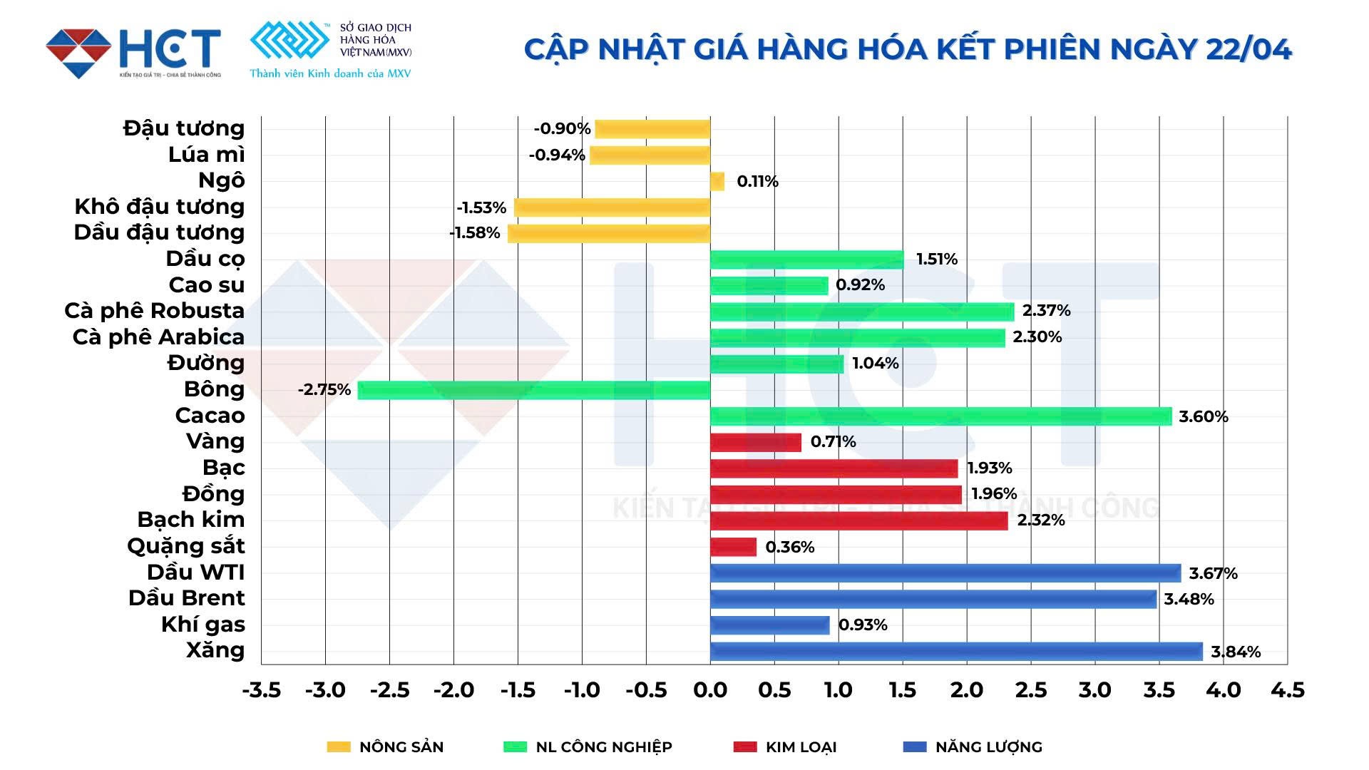 Biến động giá hàng hóa kết phiên ngày 22/04/2026:
