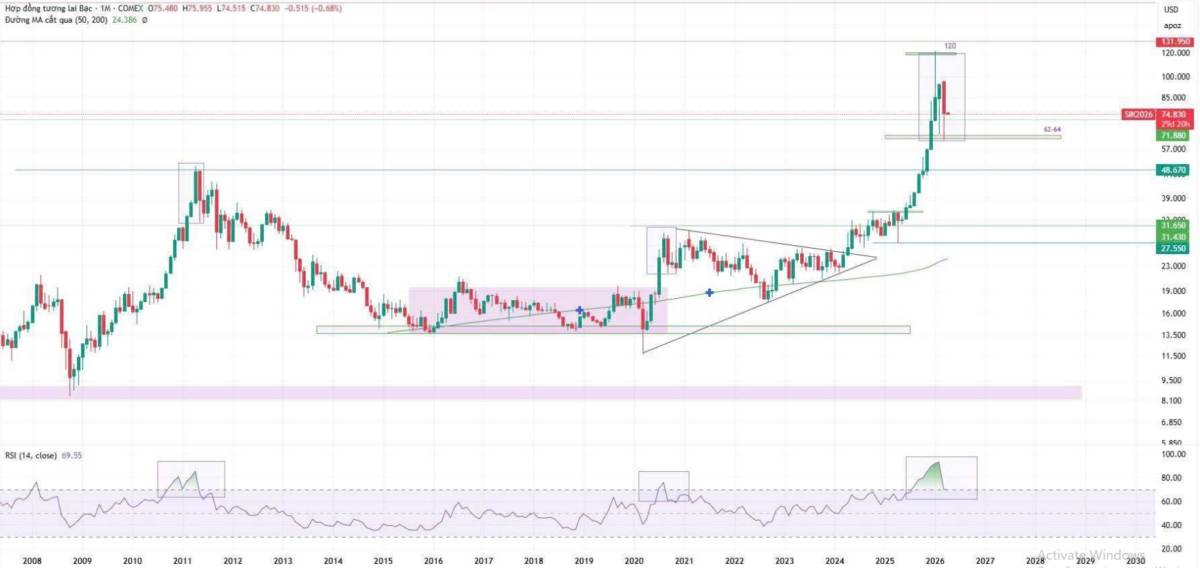 Với cấu trúc hiện tại, nhiều khả năng bạc sẽ bước vào giai đoạn chững lại và tái tích lũy quanh vùng đỉnh lịch sử, nhằm cân bằng lại động lượng sau giai đoạn tăng nóng, trước khi kỳ vọng một nhịp tăng lớn tiếp theo trong tương lai.