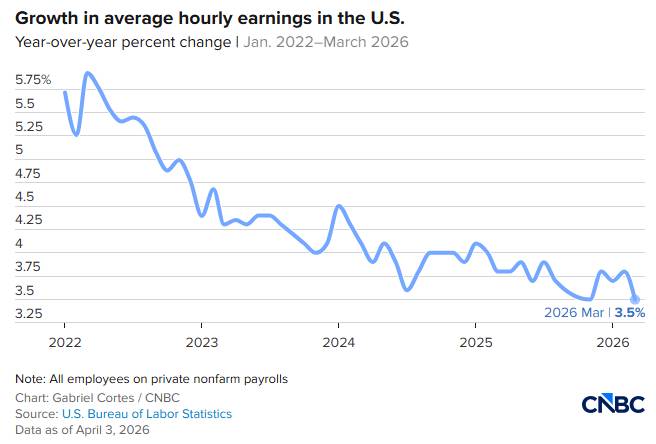 + Thu nhập bình quân theo giờ: +3,5% YoY — thấp nhất kể từ tháng 5/2021