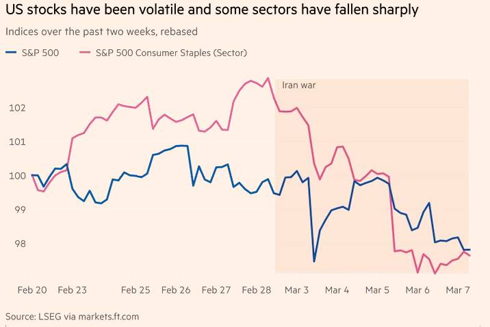 Nhóm cổ phiếu tiêu dùng thiết yếu nằm trong số các lĩnh vực chịu áp lực lớn nhất, phản ánh lo ngại của nhà đầu tư rằng chi phí đầu vào tăng cao sẽ tiếp tục bào mòn chi tiêu tùy ý của người tiêu dùng.