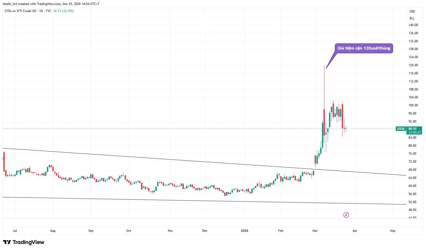 Tuy nhiên, diễn biến giá không duy trì ổn định mà liên tục đảo chiều theo thông tin đàm phán, cho thấy thị trường hiện phụ thuộc lớn vào yếu tố chính trị hơn là cung cầu thực tế.