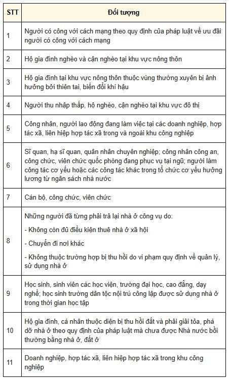 Căn cứ Điều 76 và khoản 1 Điều 77 Luật Nhà ở 2023, các đối tượng được hưởng chính sách hỗ trợ về nhà ở xã hội gồm: