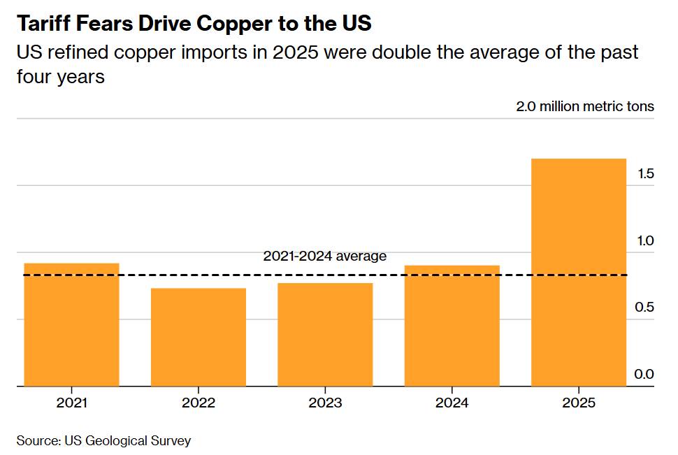 Cục diện tạm thời thay đổi khi ông Trump bất ngờ miễn thuế cho đồng tinh luyện trong gói thuế áp dụng từ tháng 7, thay vào đó đánh thuế 50% đối với các sản phẩm bán thành phẩm như ống và dây đồng. Tuy nhiên, cam kết sẽ xem xét lại quyết định này vào cuối năm đã nhanh chóng khơi lại lo ngại, làm tái xuất khoảng chênh giá sinh lời giữa New York và London, qua đó duy trì đà gia tăng tồn kho. Hệ quả là nhập khẩu đồng của Mỹ trong năm 2024 gần như tăng gấp đôi, đạt 1,7 triệu tấn, theo số liệu của Cơ quan Khảo sát Địa chất Mỹ (USGS).