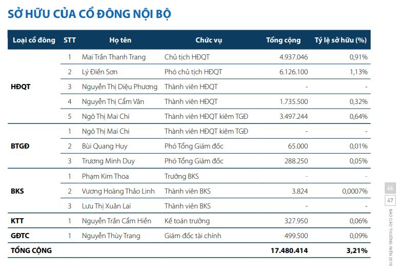 Ngoài đổi Chủ tịch, "ghế nóng" trong Ban điều hành, chức Tổng giám đốc cũng được chuyển giao sang bà Ngô Thị Mai Chi (sinh năm 1978, trình độ cử nhân Tài chính - Kế toán) vào tháng 3/2017.