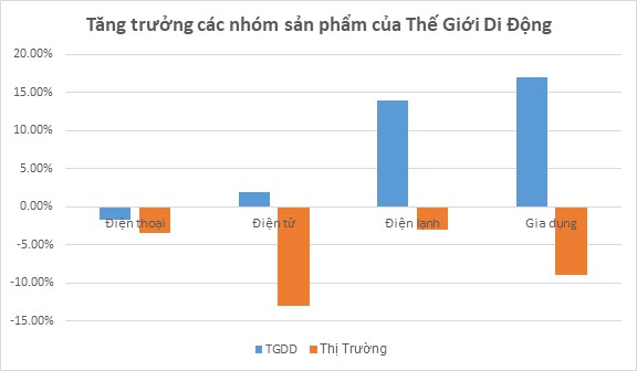 Về tăng trưởng của từng nhóm ngành hàng điện tử tiêu dùng thì hoạt động kinh doanh của Thế Giới Di Động tốt hơn mặt bằng chung thị trường. Dựa theo số liệu của GfK – Temax.